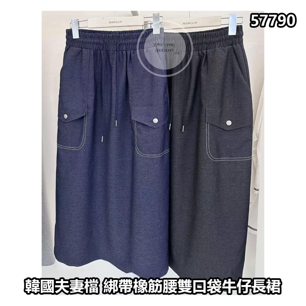 韓國夫妻檔 綁帶橡筋腰雙口袋牛仔長裙【買滿5件包郵(自選) | 5/10截單 | 預計11月中到貨 | 20250930(57790.)】