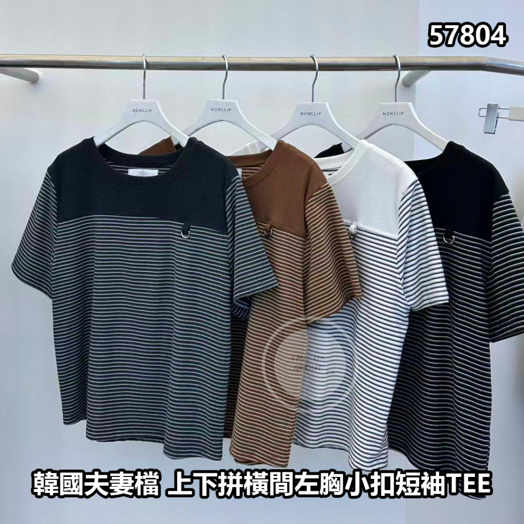 韓國夫妻檔 上下拼橫間左胸小扣短袖TEE【買滿5件包郵(自選) | 5/10截單 | 預計11月中到貨 | 20250930(57804.)】