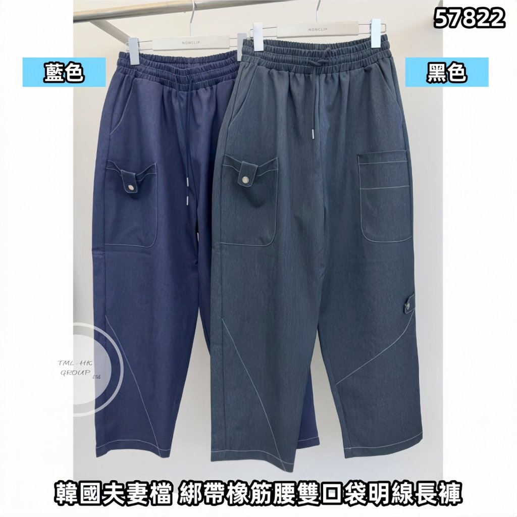 韓國夫妻檔 綁帶橡筋腰雙口袋明線長褲【買滿5件包郵(自選) | 5/10截單 | 預計11月中到貨 | 20250930(57822.)】