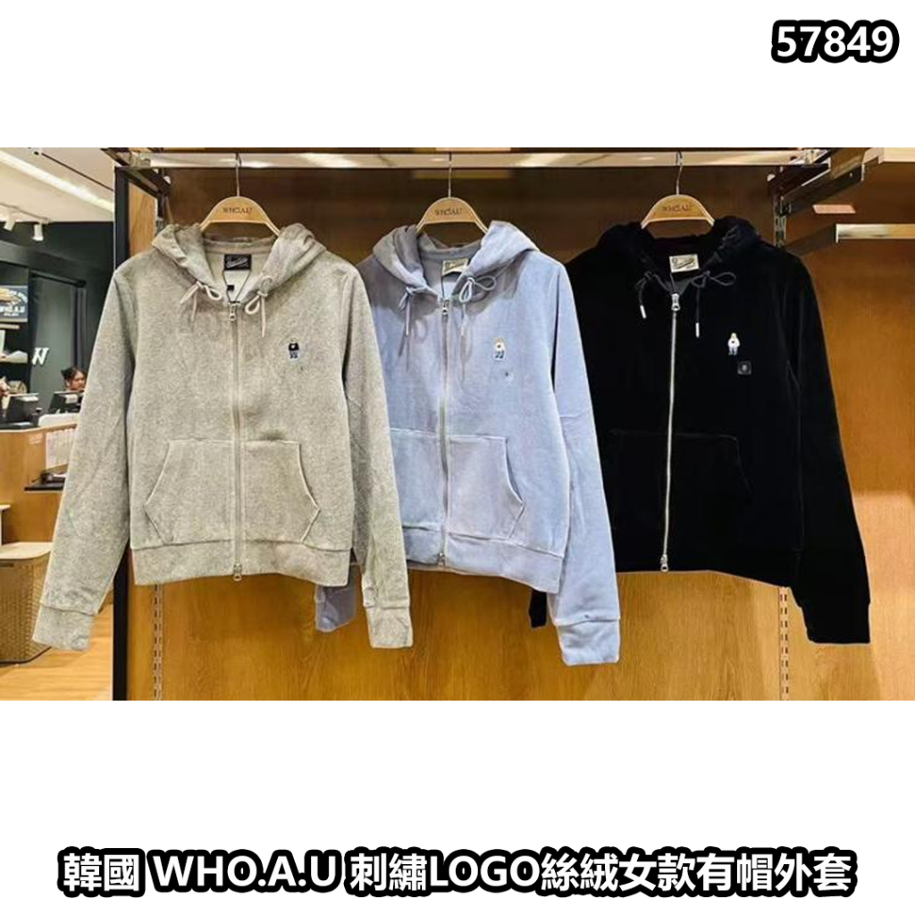 韓國 WHO.A.U 刺繡LOGO絲絨女款有帽外套(WHMZF4V51F)【買5件自選包郵 | 4/10截單 | 預計11月中前到貨 | 20250929(57849.)】