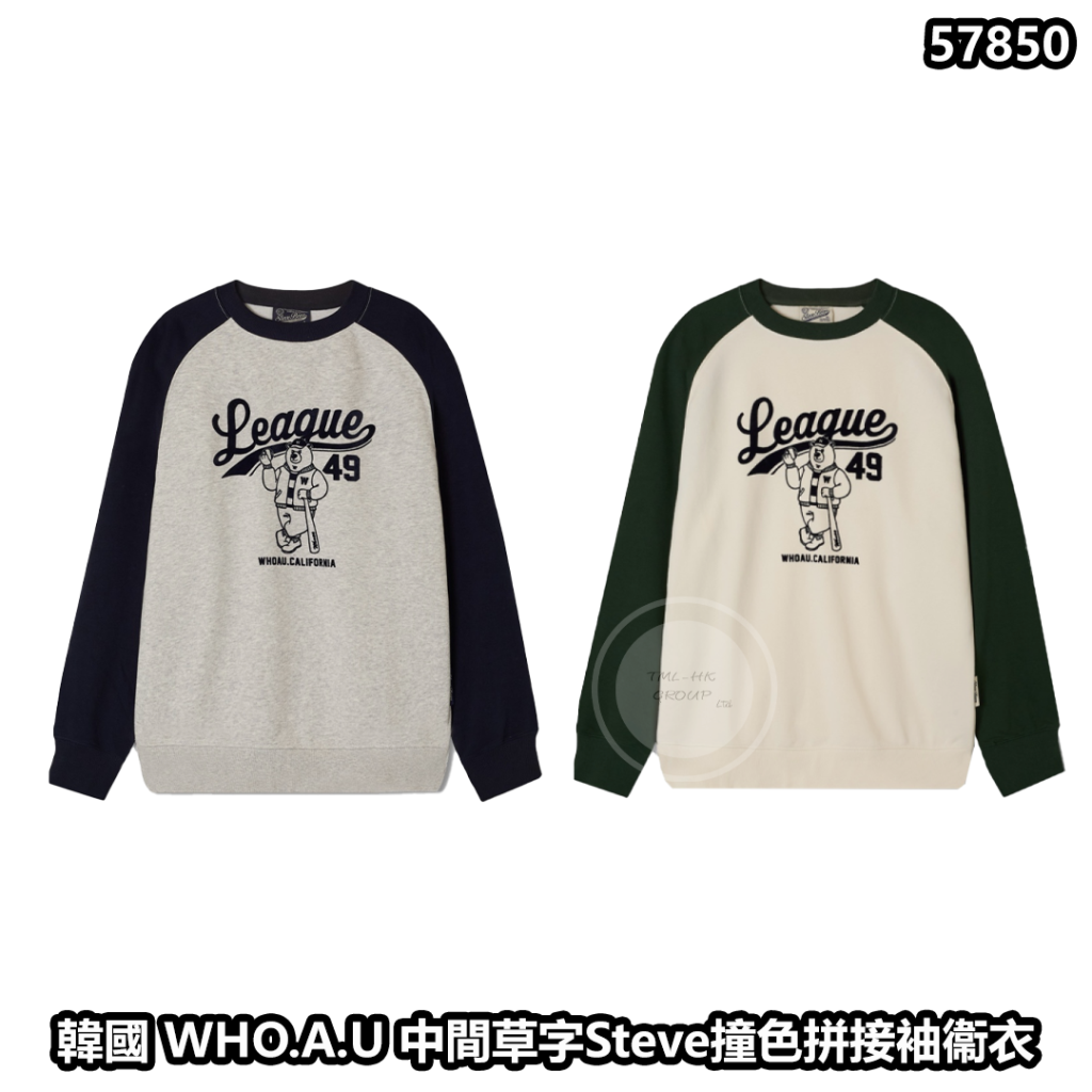 韓國 WHO.A.U 中間草字Steve撞色拼接袖衞衣(WHMWF4931U)【買5件自選包郵 | 4/10截單 | 預計11月中前到貨 | 20250929(57850.)】