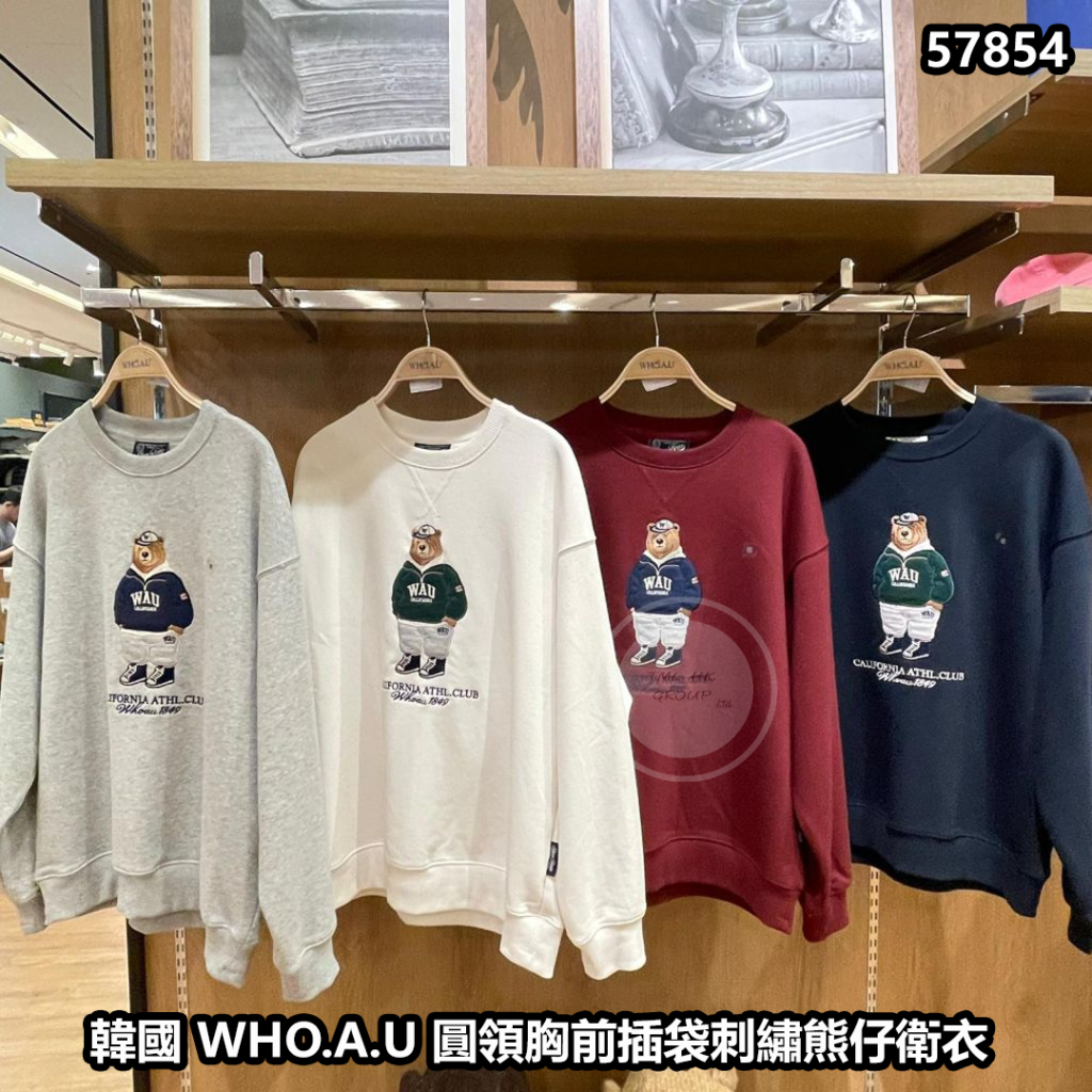 韓國 WHO.A.U 圓領胸前插袋刺繡熊仔衛衣 (WHMWF3922U)【買5件自選包郵 | 4/10截單 | 預計11月中前到貨 | 20250929(57854.)】