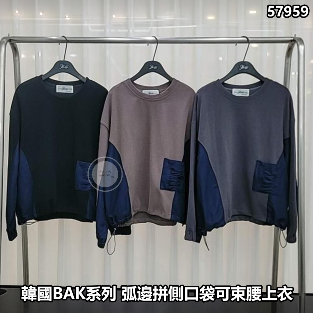 韓國BAK系列 弧邊拼側口袋可束腰上衣【買滿5件包郵 | 4件或以上每件-$10 | 14/12截單 | 預計1月中至尾到貨 | 20251209C(57959)】