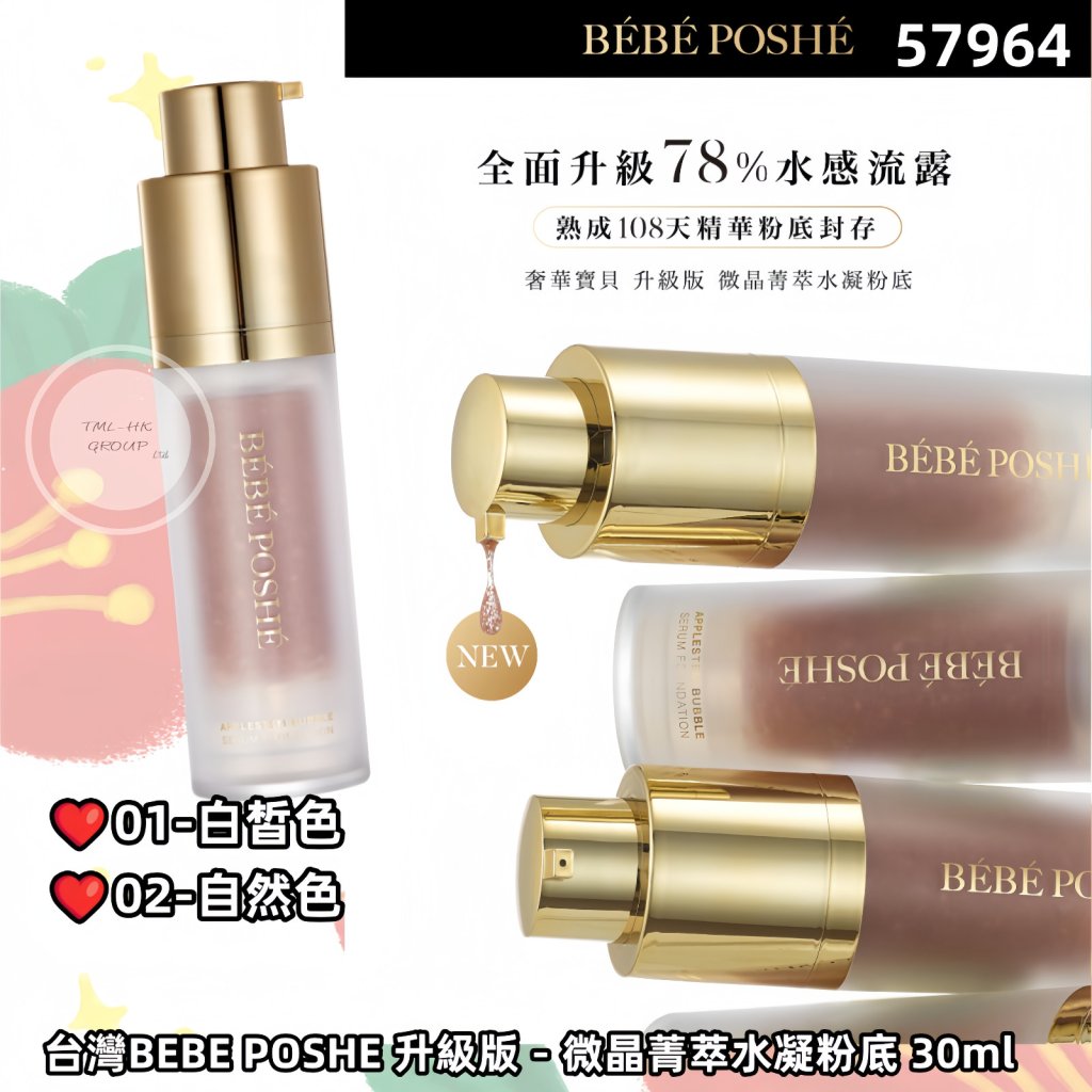 台灣BEBE POSHE 升級版-微晶菁萃水凝粉底 30ml(BP966246-001/BP966247-001)【滿$1000包郵 | 28/10截單 | 預計12月初至中到貨 | 20251023B(57964.)】
