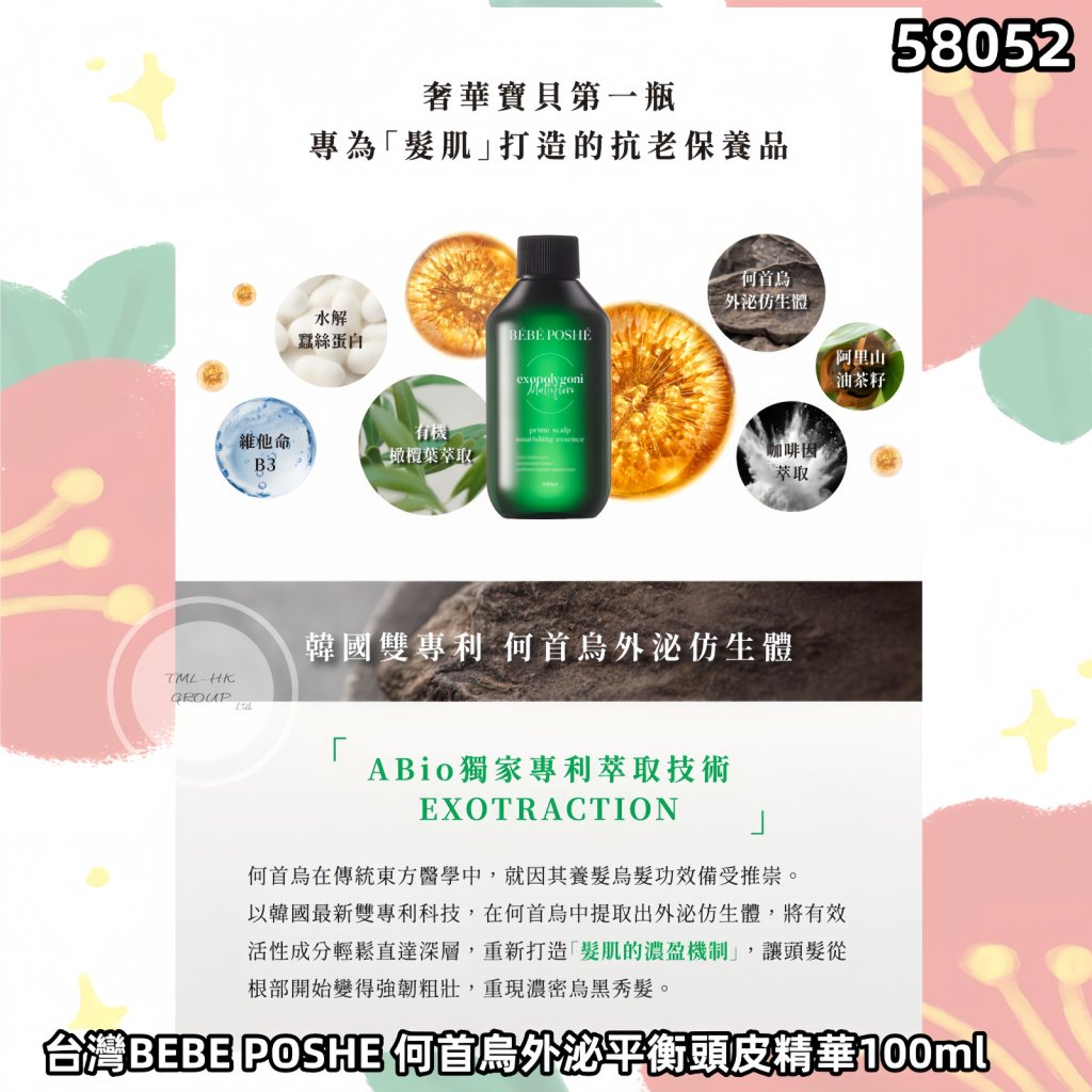 台灣BEBE POSHE 何⾸烏外泌平衡頭⽪精華100ml(BP966269-001)【滿$1000包郵 | 28/10截單 | 預計12月初至中到貨 | 20251023B(58052.)】