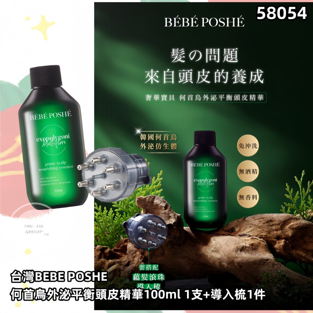 台灣BEBE POSHE 何⾸烏外泌平衡頭⽪精華100ml+導入梳(BP966269-001/BP966269-003)【滿$1000包郵 | 28/10截單 | 預計12月初至中到貨 | 20251023B(58054.)】