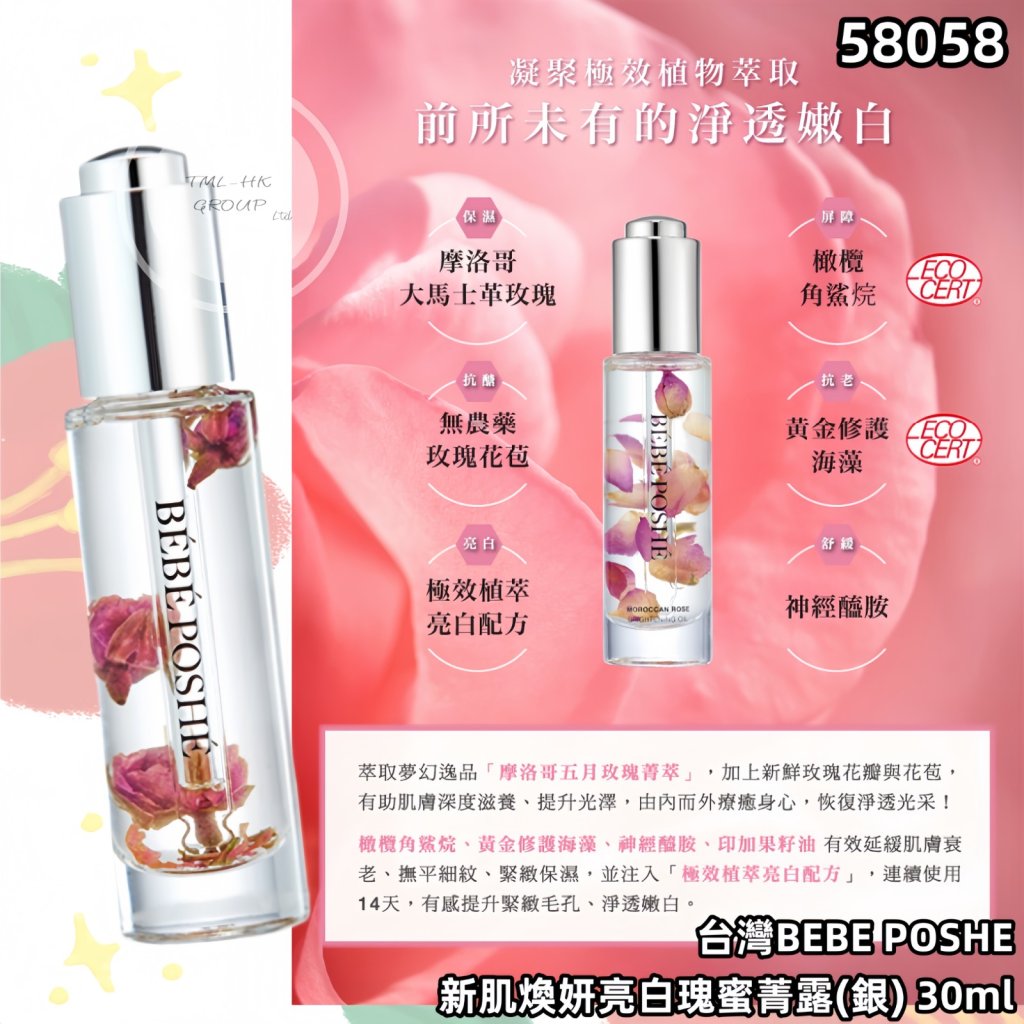 台灣BEBE POSHE 新肌煥妍亮⽩瑰蜜菁露(銀) 30ml (BP966197-003)【滿$1000包郵 | 28/10截單 | 預計12月初至中到貨 | 20251023B(58058.)】