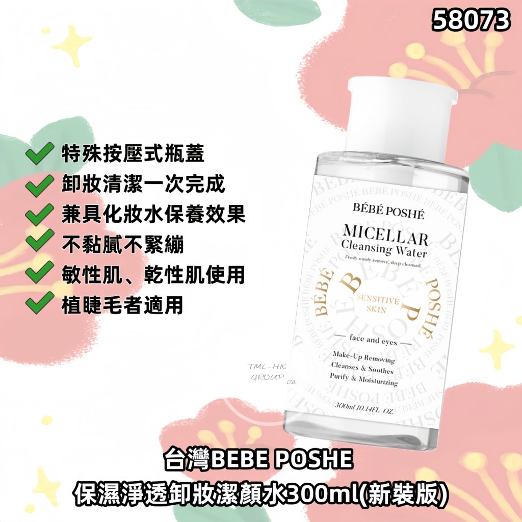 台灣BEBE POSHE 保濕淨透卸妝潔顏水300ml(新裝版)(BP966267)【滿$1000包郵 | 28/10截單 | 預計12月初至中到貨 | 20251023B(58073.)】