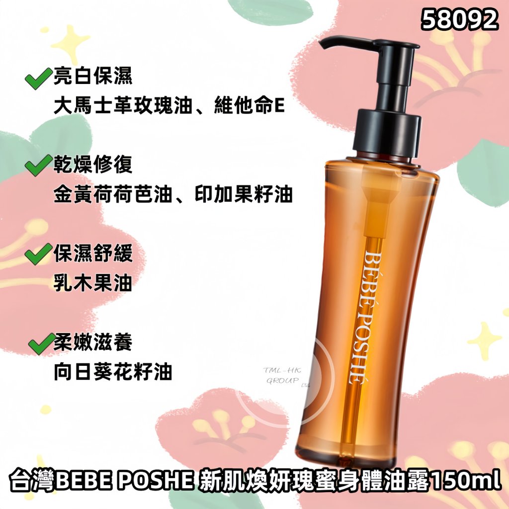 台灣BEBE POSHE 新肌煥妍瑰蜜身體油露150ml (BP966256-001)【滿$1000包郵 | 28/10截單 | 預計12月初至中到貨 | 20251023B(58092.)】