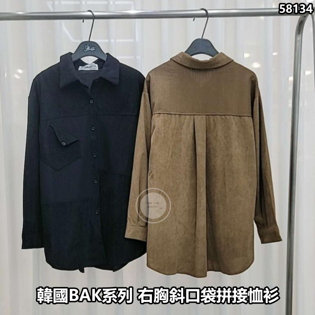 韓國BAK系列 右胸斜口袋拼接恤衫【買滿5件包郵 | 4件或以上每件-$10 | 14/12截單 | 預計1月中至尾到貨 | 20251209C(58134.)】
