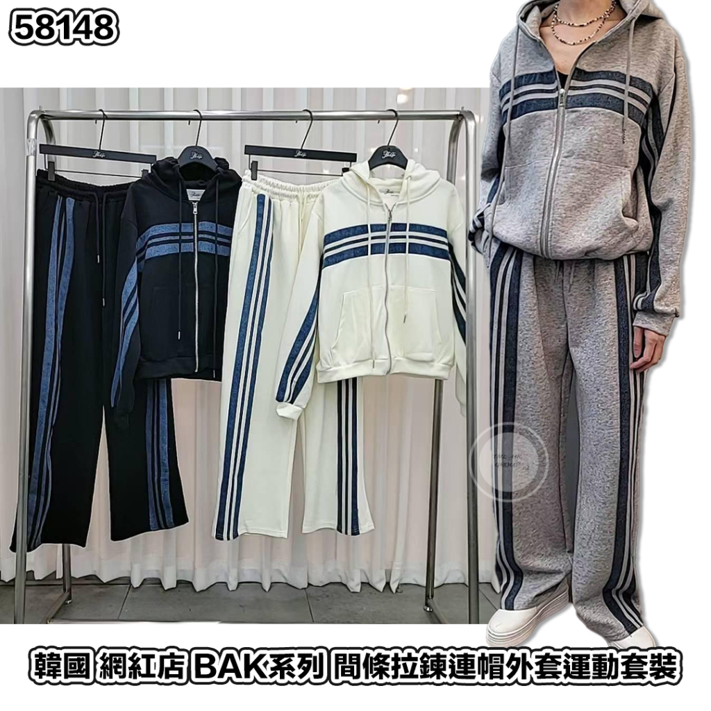 韓國 網紅店 BAK系列 間條拉鍊連帽外套運動套裝【買滿5件包郵 | 2/11截單 | 預計12月初至中到貨 | 20251028B(58148.)】