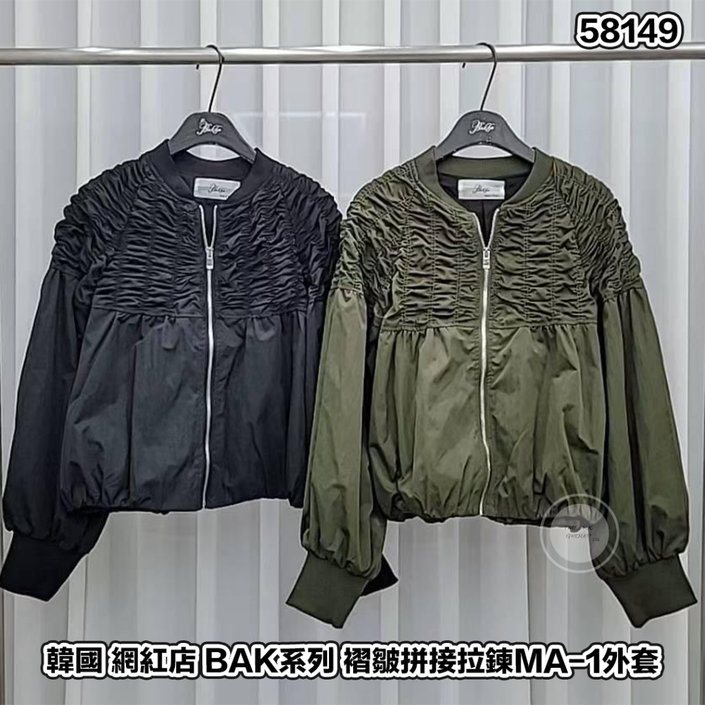韓國 網紅店 BAK系列 褶皺拼接拉鍊MA-1外套【買滿5件包郵 | 2/11截單 | 預計12月初至中到貨 | 20251028B(58149.)】