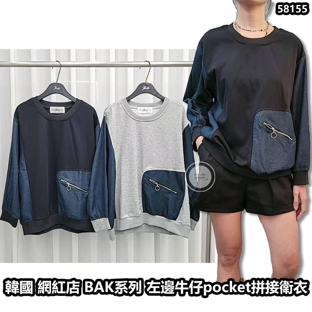 韓國 網紅店 BAK系列 左邊仿牛仔布pocket拼接衛衣【買滿5件包郵 | 2/11截單 | 預計12月初至中到貨 | 20251028B(58155.)】
