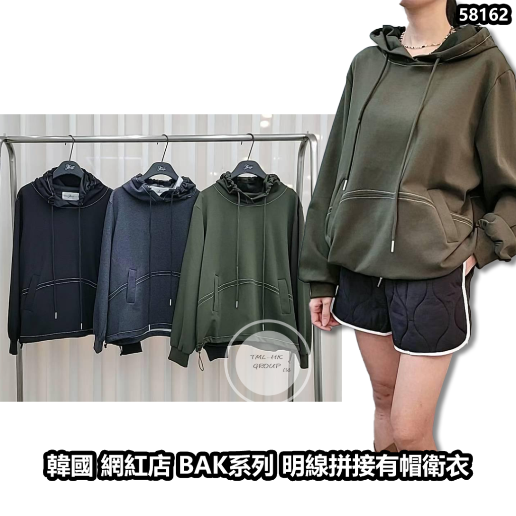 韓國 網紅店 BAK系列 明線拼接有帽衛衣【買滿5件包郵 | 2/11截單 | 預計12月初至中到貨 | 20251028B(58162.)】