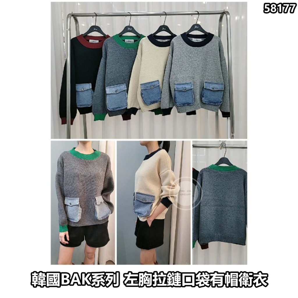 韓國BAK系列 牛仔雙袋針織衛衣【買滿5件包郵 | 4件或以上每件-$10 | 14/12截單 | 預計1月中至尾到貨 | 20251209C(58177.)】