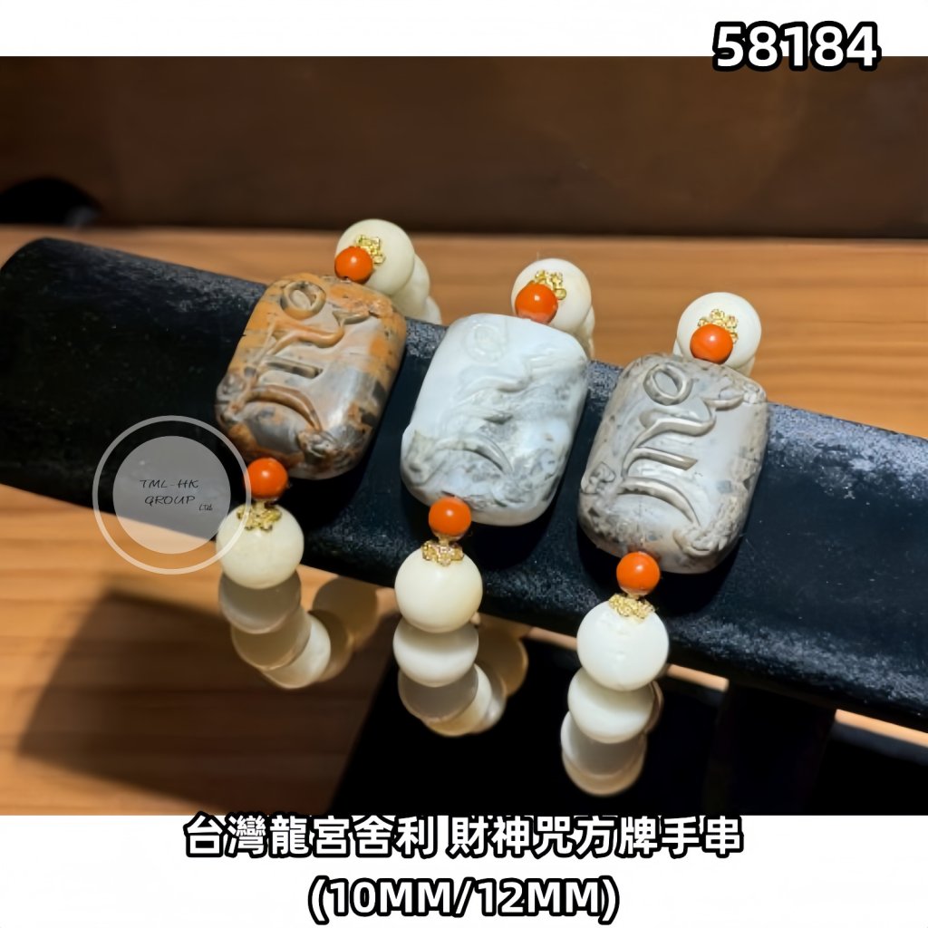 台灣龍宮舍利 財神咒方牌手串(10MM/12MM)【顏色隨機 | 買滿$888自選包郵 | 29/10截單 | 預計12月初至中到貨 | 20251024A(58184.)】