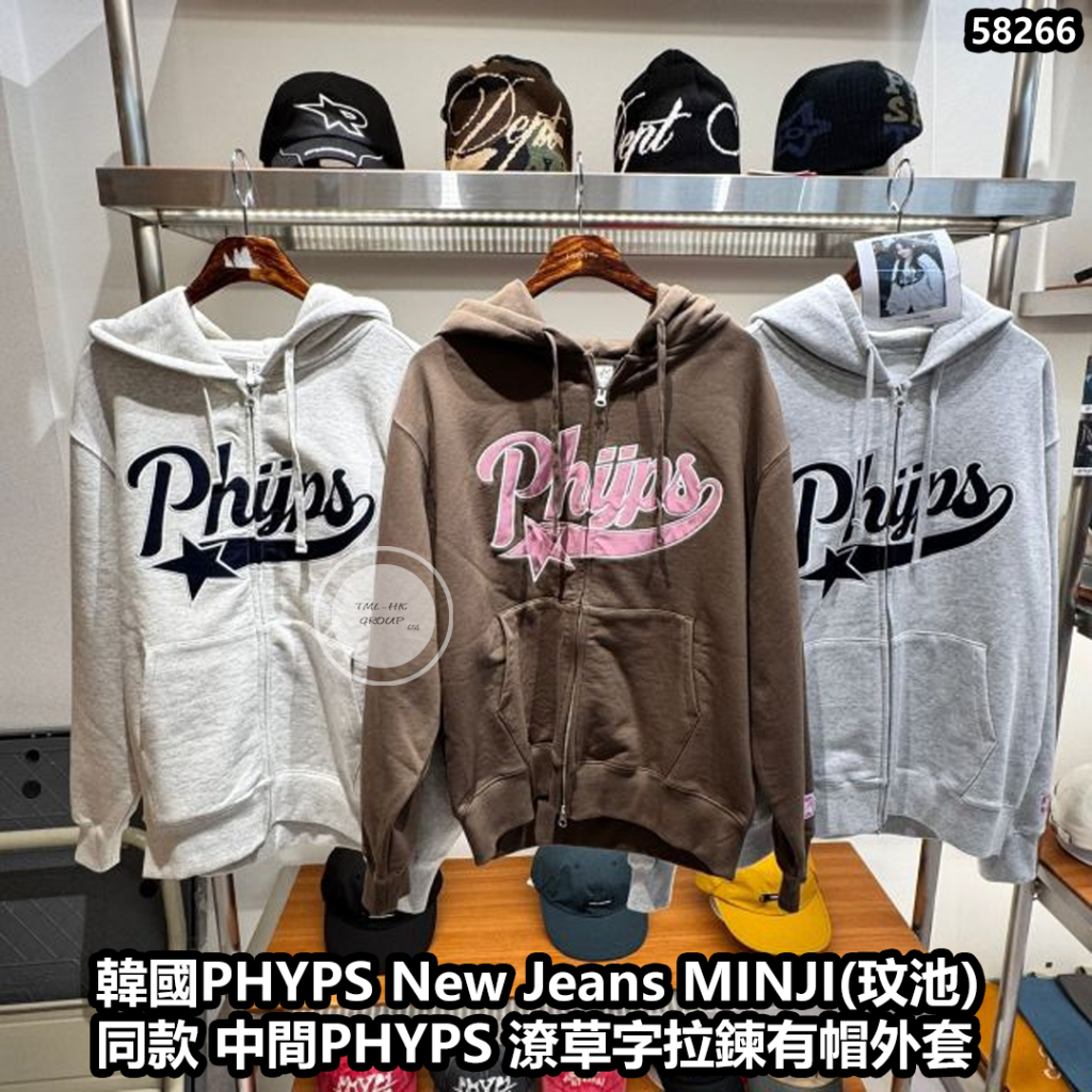 主頁 韓國PHYPS New Jeans MINJI(玟池) 同款 中間PHYPS 潦草字拉鍊有帽外套(PFF1HZ302S)【29/10 截單 | 預計12月初至中到貨 | 20251025A(58266.)】