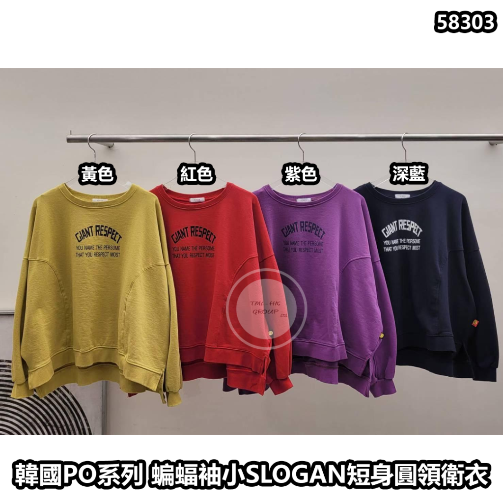 韓國PO系列 蝙蝠袖小SLOGAN短身圓領衛衣【5件自選包郵 | 6/11截單 | 預計12月中到貨 | 20251102B(58303.)】