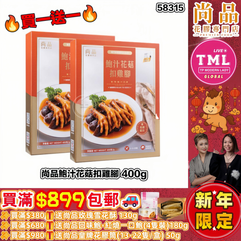 TML X 尚品 鮑汁花菇扣雞腳 400g【買滿$899包郵 | 買一送一 | 10/1截單 | 預計2月初派貨 | 20260105(58315.)】