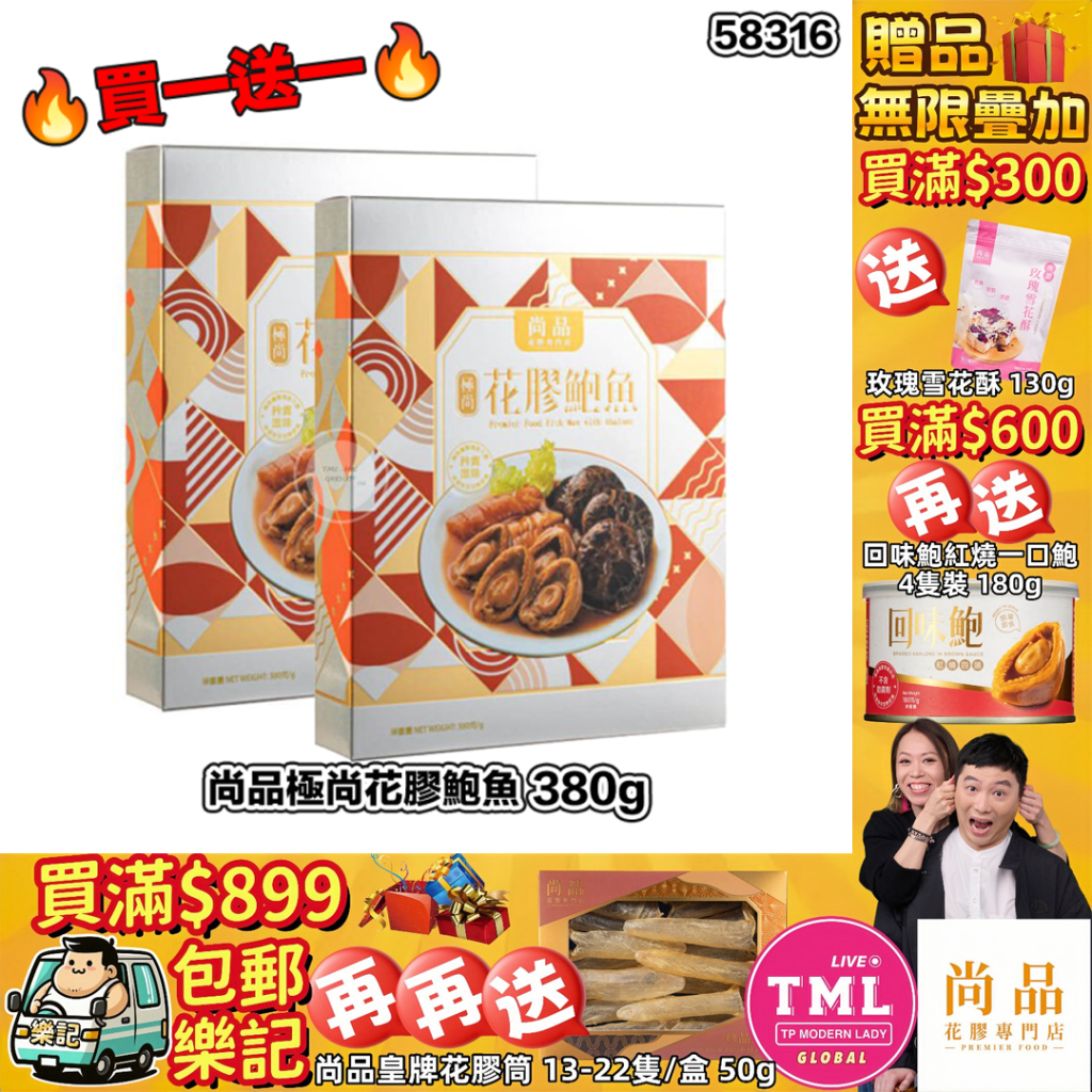主頁 TML X 尚品 極尚花膠鮑魚 380g【買一送一 | 17/11截單 | 預計12月中派貨 | 20251112(58316.)】