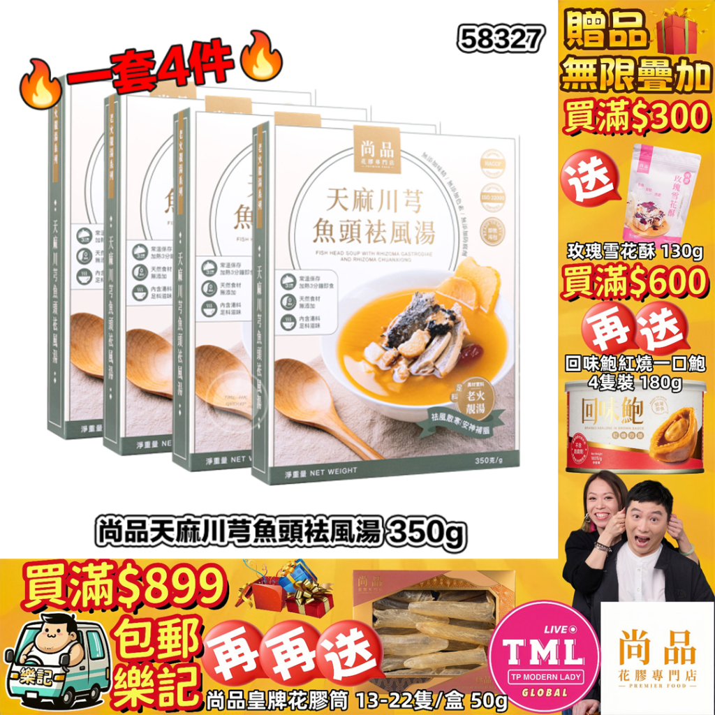 TML X 尚品 天麻川芎魚頭袪風湯 350g【一套4件 | 17/11截單 | 預計12月中派貨 | 20251112(58327.)】