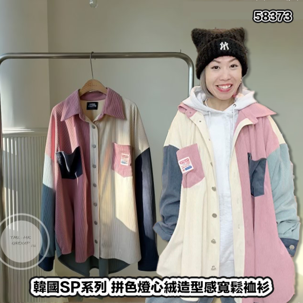 韓國SP系列 拼色燈心絨造型感寬鬆裇衫【12/11截單 | 預計12月中至尾至尾到貨 | 20251107(58373.)】