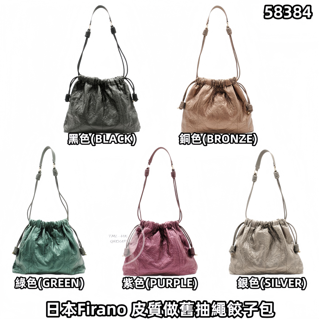日本Firano 皮質做舊抽繩餃子包(大) (A403112)【3件減$10 | 五件包郵 | 12/11截單 | 預計12月中至尾到貨 | 20251107(58384.)】