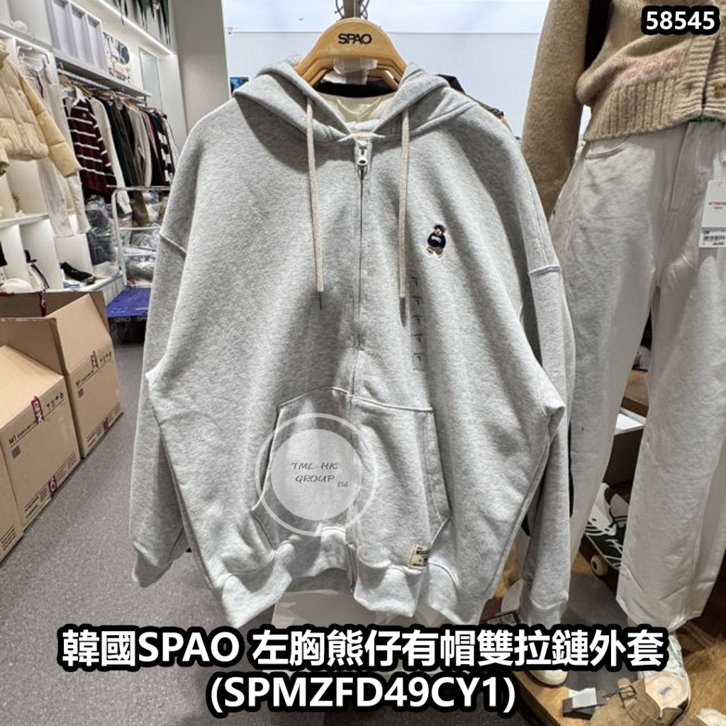 韓國SPAO 左胸熊仔有帽雙拉鏈外套 (SPMZFD49CY1)【 2/11截單 | 預計12月初至中到貨 | 20251028A(58545.)】