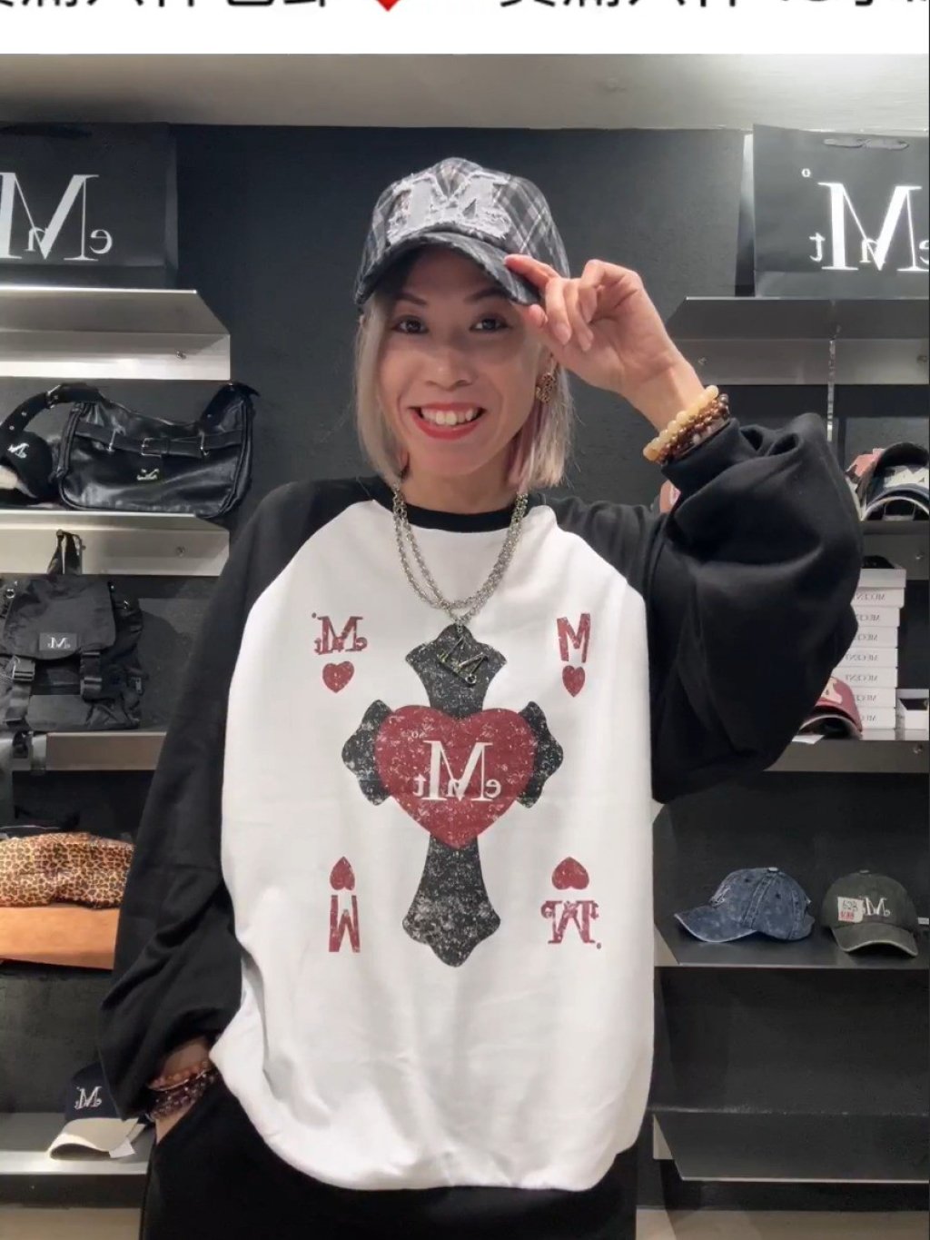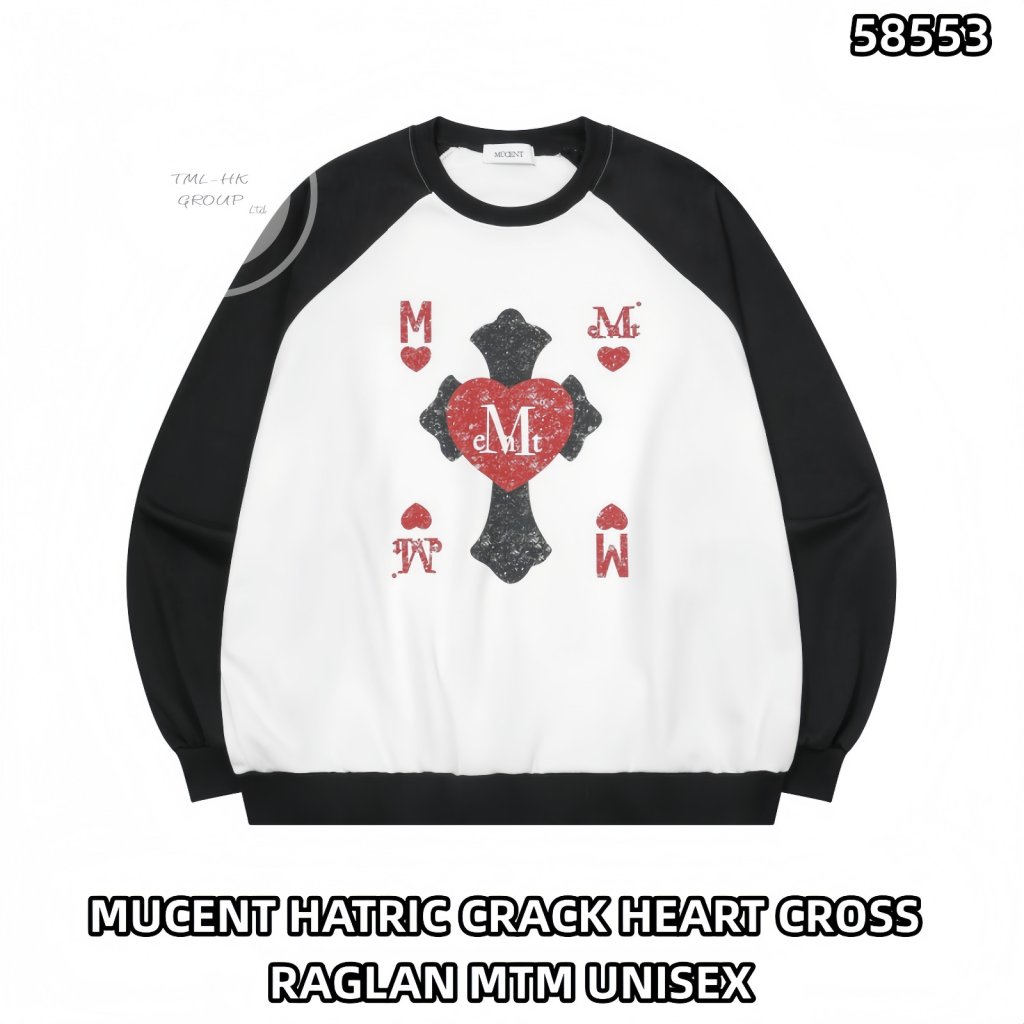 主頁 MUCENT HATRIC CRACK HEART CROSS RAGLAN MTM UNISEX 中間十字架心心衛衣【買滿6件包郵 | 第二團 | 25/12截單 | 預計2月初至中到貨 | 20251220B(58553.)】