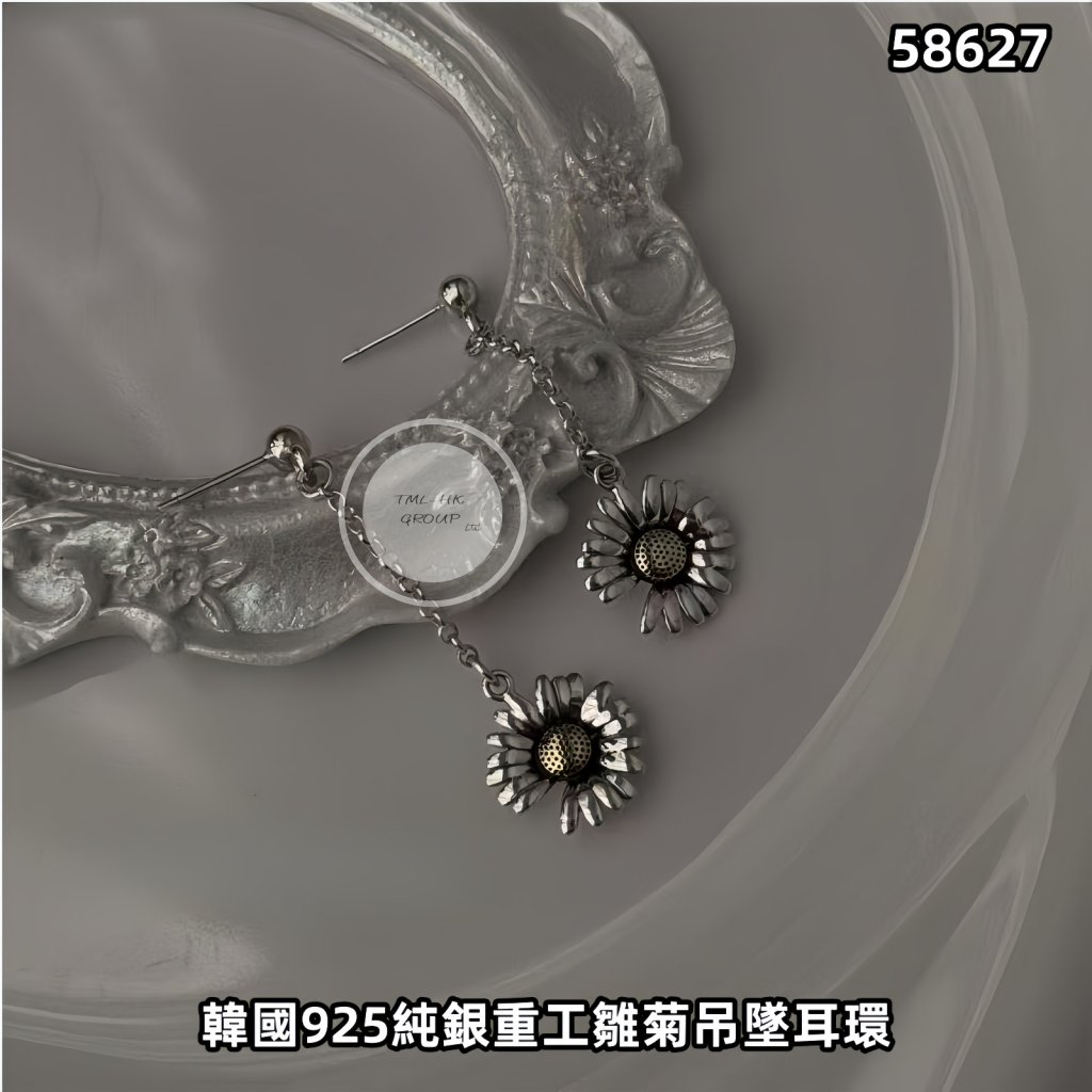 韓國925純銀重工雛菊吊墜耳環【買滿6件包郵 | 4件減$10 | 4/11截單 | 預計12月中到貨 | 20251030B(58627.)】