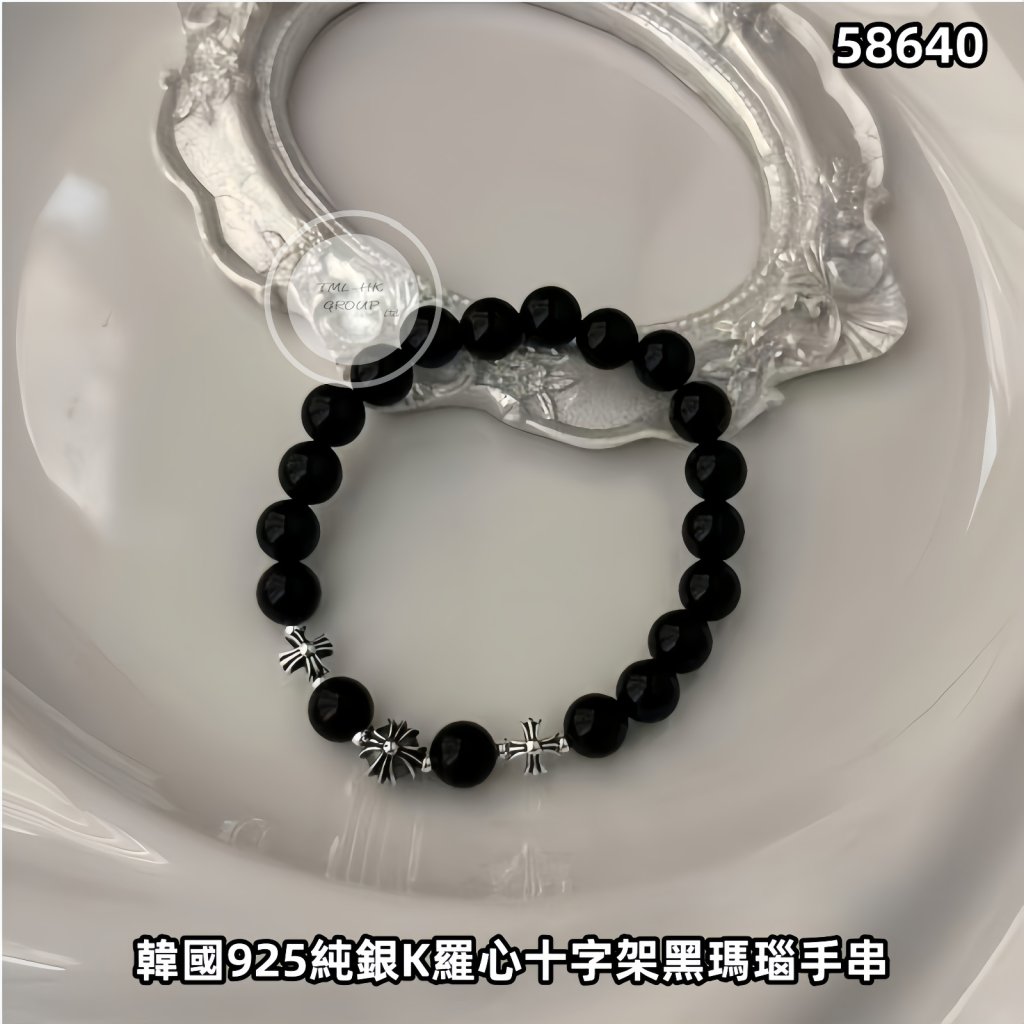 韓國925純銀K羅心十字架黑瑪瑙手串【買滿6件包郵 | 4件減$10 | 4/11截單 | 預計12月中到貨 | 20251030B(58640.)】