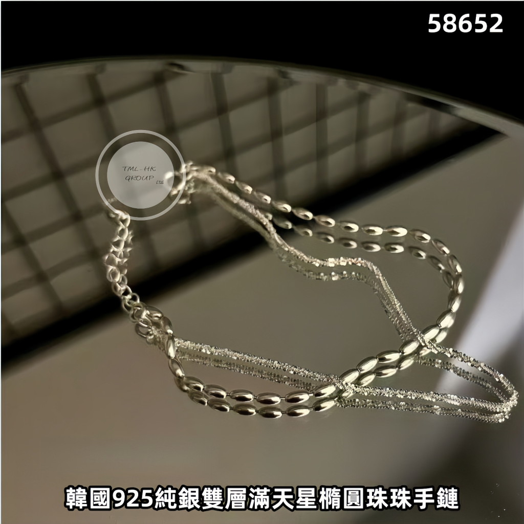 韓國925純銀雙層滿天星橢圓珠珠手鏈【買滿6件包郵 | 4件減$10 | 4/11截單 | 預計12月中到貨 | 20251030B(58652.)】