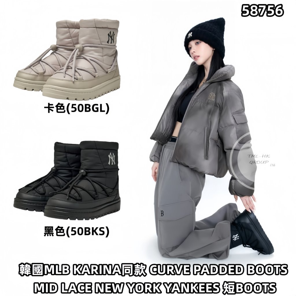 韓國MLB KARINA 同款 CURVE PADDED BOOTS MID LACE NEW YORK YANKEES 短BOOTS(3AWBCPM56)【8/11截單 | 預計12月底到貨 | 20251103B(58756.)】