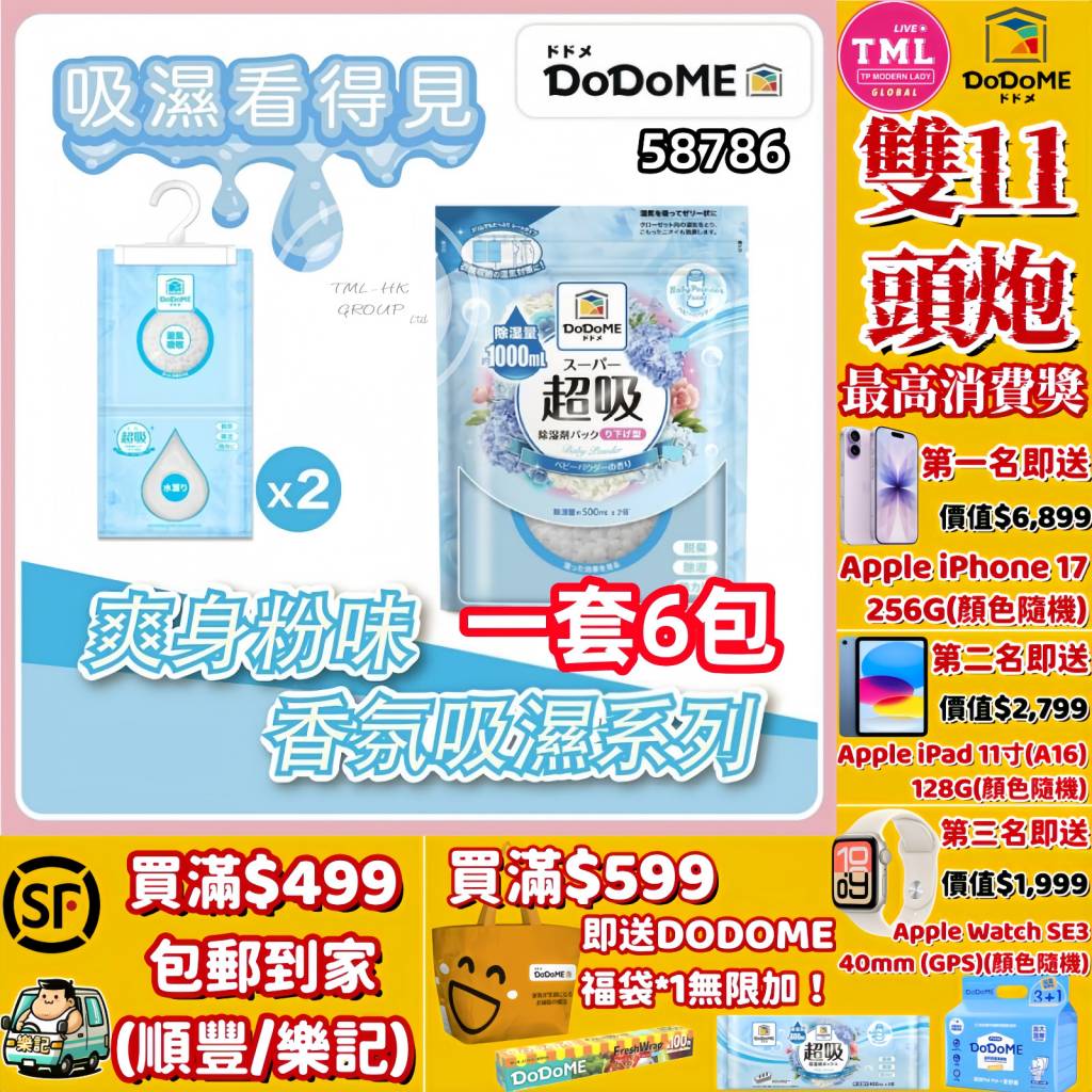 DoDoME 超吸吸濕掛裝500mL 香氛系列 (爽身粉)(500mL x 2個裝)(一套6包)【滿$499包郵 | 滿$599送福袋 | 11/11截單 | 預計12月初至中到貨 | 20251106(58786.)】