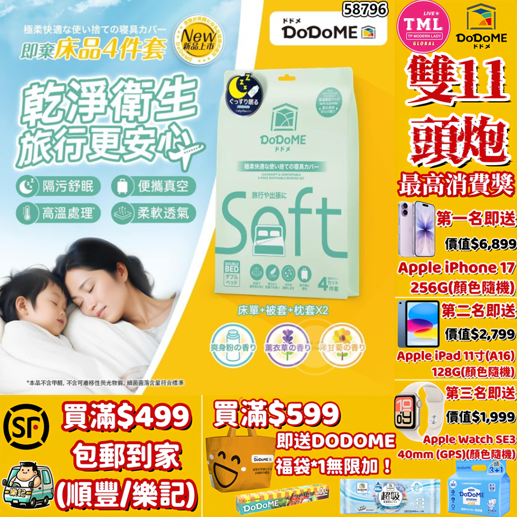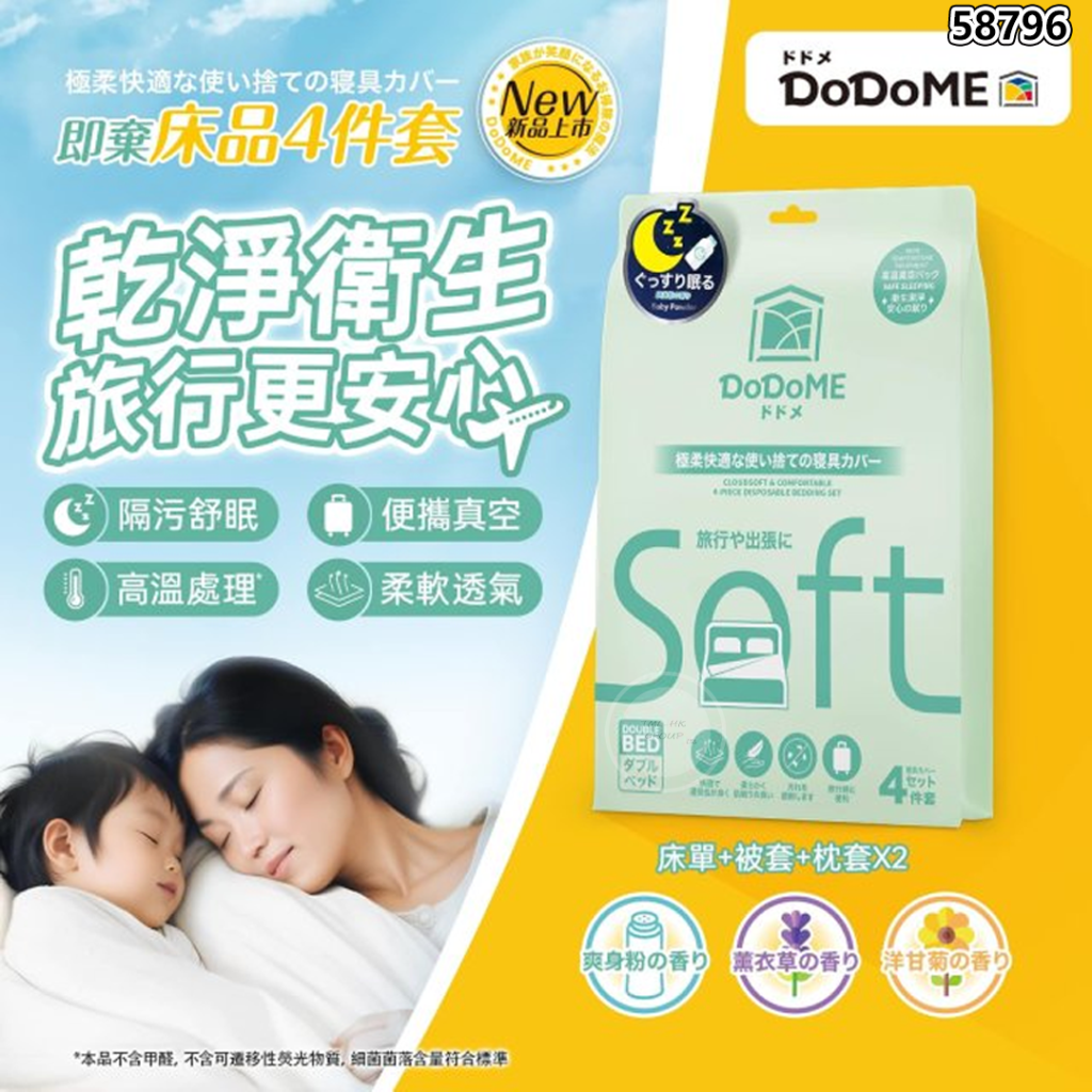 主頁 DoDoME 雲柔舒適一次性床品4件套【1set 4包 共16件 | 滿$499包郵 | 滿$599送福袋 | 11/11截單 | 預計12月初至中到貨 | 20251106(58796.)】