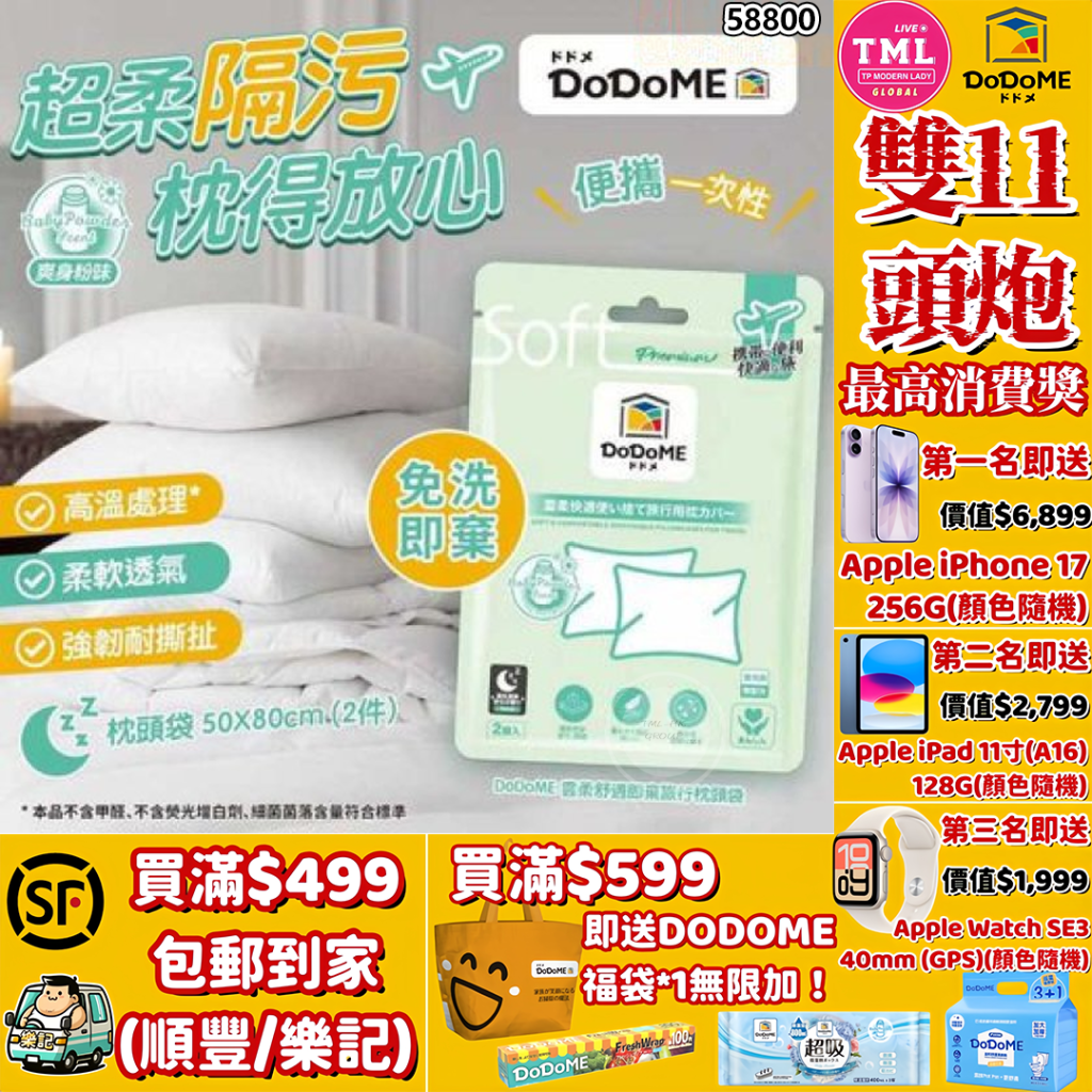 DoDoME 雲柔舒適即棄旅行枕頭袋(爽身粉香味)【滿$499包郵 | 滿$599送福袋 | 11/11截單 | 預計12月初至中到貨 | 20251106(58800.)】