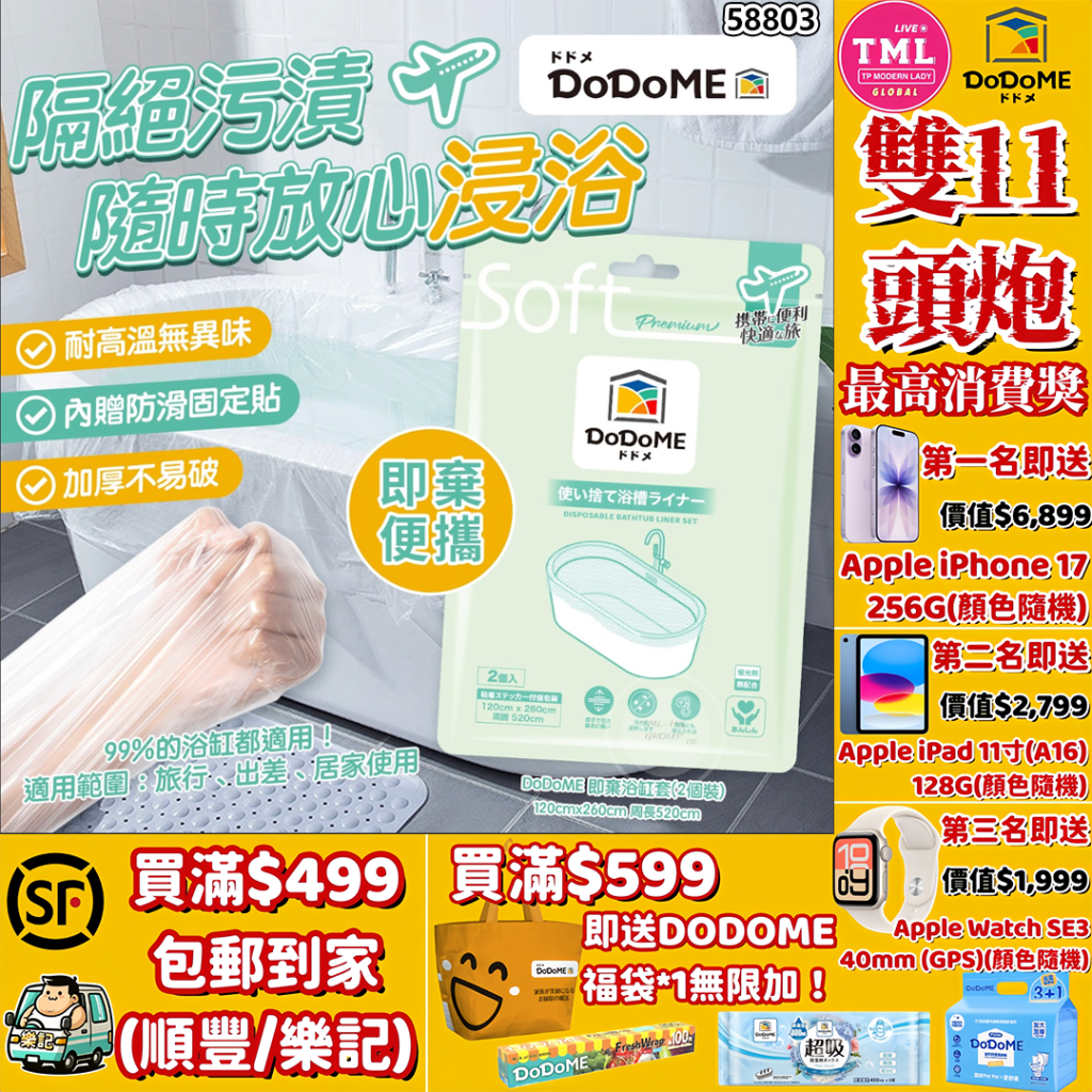 DoDoME 即棄浴缸套(2個裝)【滿$499包郵 | 滿$599送福袋 | 11/11截單 | 預計12月初至中到貨 | 20251106(58803.)】