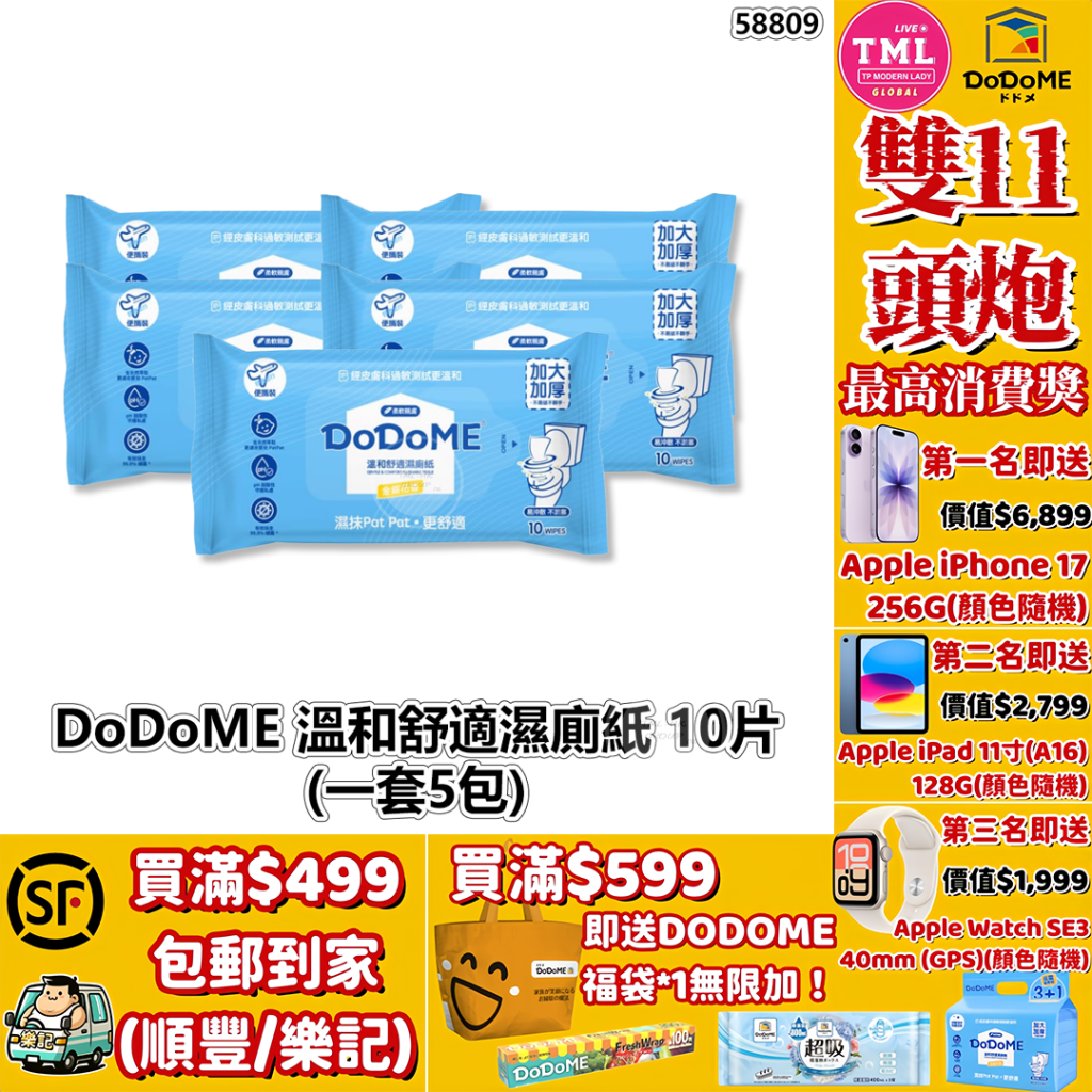 主頁 DoDoME 溫和舒適濕廁紙 10片(一套5包)【滿$499包郵 | 滿$599送福袋 | 11/11截單 | 預計12月初至中到貨 | 20251106(58809.)】