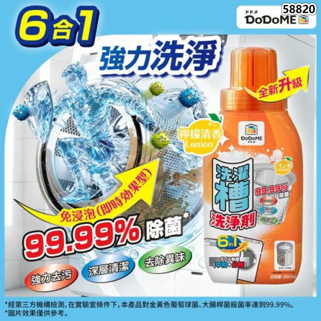 6合1功效:有效殺菌99.99%*、雙重去除異味 、去除污垢、深層清潔、持久清新 檸檬香味、無須浸泡。
