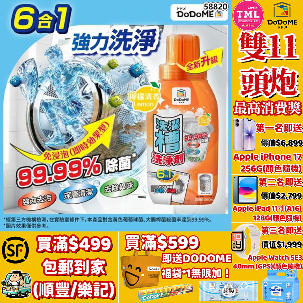 DoDoME 洗衣機除菌清潔液 250mL【滿$499包郵 | 滿$599送福袋 | 11/11截單 | 預計12月初至中到貨 | 20251106(58820.)】