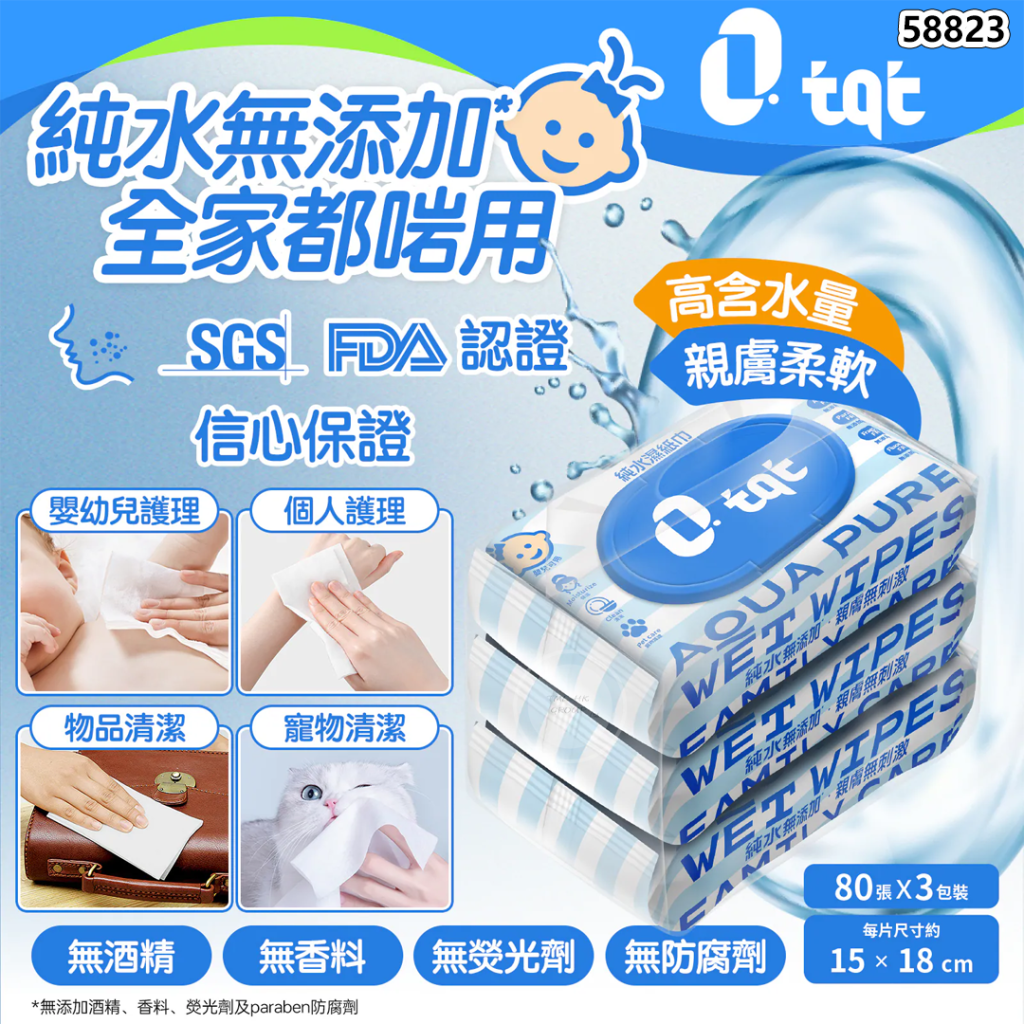 DoDoME TQT純水濕紙巾 80片 3連包(升級版)(一套4抽共12包)【滿$499包郵 | 滿$599送福袋 | 11/11截單 | 預計12月初至中到貨 | 20251106(58823.)】