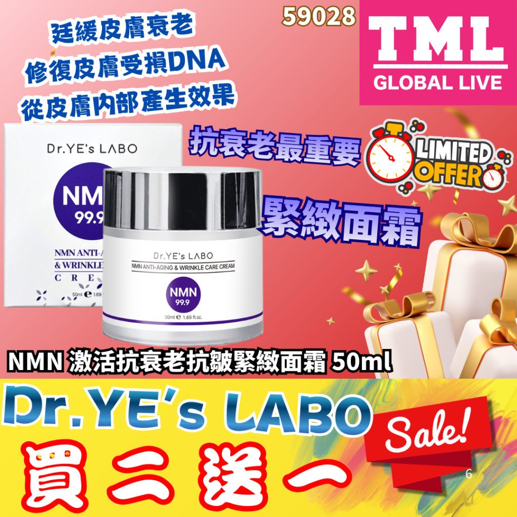 DR.YE'S LABO NMN 激活抗衰老抗皺緊緻⾯霜 NMN ANTI-AGING & WRINKLE CARE CREAM 50ML (1 SET 買2送1 共3枝)【買滿$1000包郵 | 14/03截單 | 預計4月中至尾到貨 | 20260309B(59028.)】