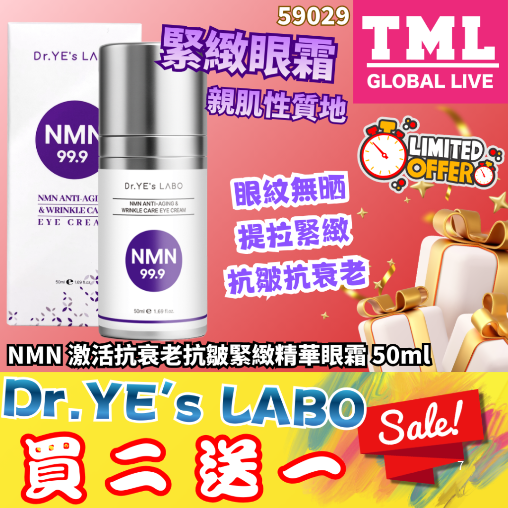 DR.YE'S LABO NMN 激活抗衰老抗皺緊緻精華眼霜 NMN ANTI-AGING & WRINKLE CARE EYE CREAM 50ML (1 SET 買2送1 共3枝)【買滿$1000包郵 | 14/03截單 | 預計4月中至尾到貨 | 20260309B(59029.)】