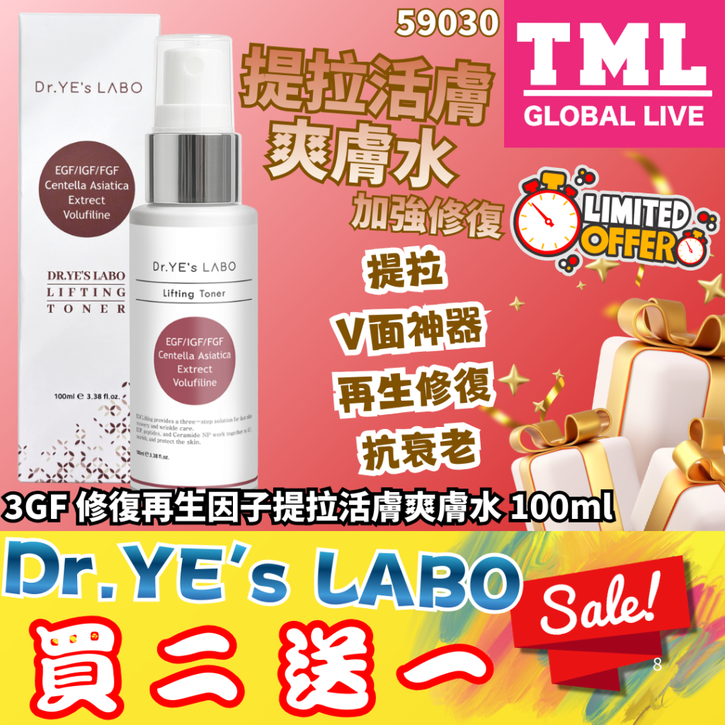 DR.YE'S LABO 3GF 修復再生因子提拉活膚爽膚水 3GF Centella Asiatica Extrect Volufiline Toner 100ML (1 SET 買2送1 共3枝)【買滿$1000包郵 | 14/03截單 | 預計4月中至尾到貨 | 20260309B(59030.)】