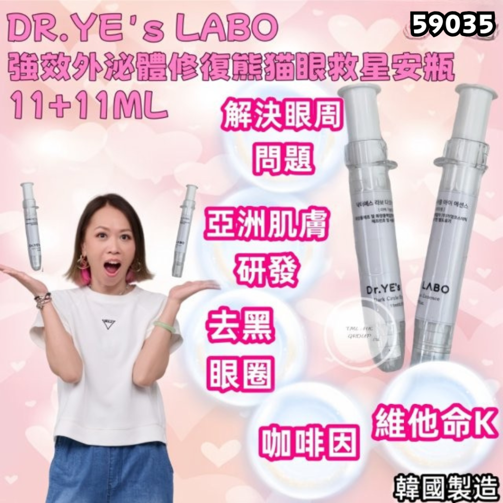 主頁 DR.YE'S LABO 強效外泌體修復熊猫眼救星安瓶 DARK CIRCLE EYE ESSENCE 11+11ML (1 SET 買2送1 共3枝)【買滿$1000包郵 | 17/1截單 | 預計2月中至尾到貨 | 20260112(59035.)】