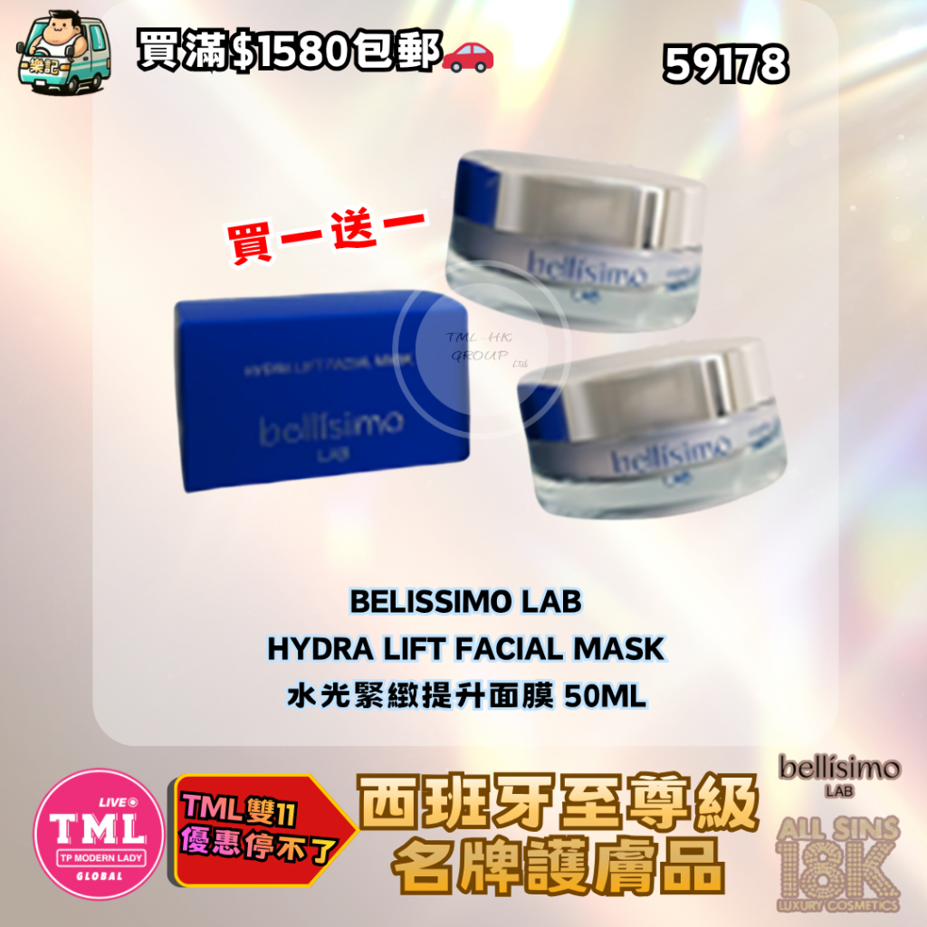 Belissimo Lab Hydra Lift Facial Mask 水光緊緻提升面膜 50ml (買一送一共兩支)【20/11截單 | 預計12月中至尾到貨 | 20251115(59178.)】
