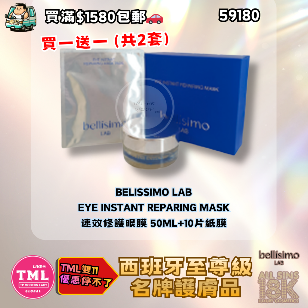 主頁 Belissimo Lab Eye Instant Reparing Mask 速效修護眼膜 50ml+10片紙膜 (買一送一共兩套)【20/11截單 | 預計12月中至尾到貨 | 20251115(59180.)】