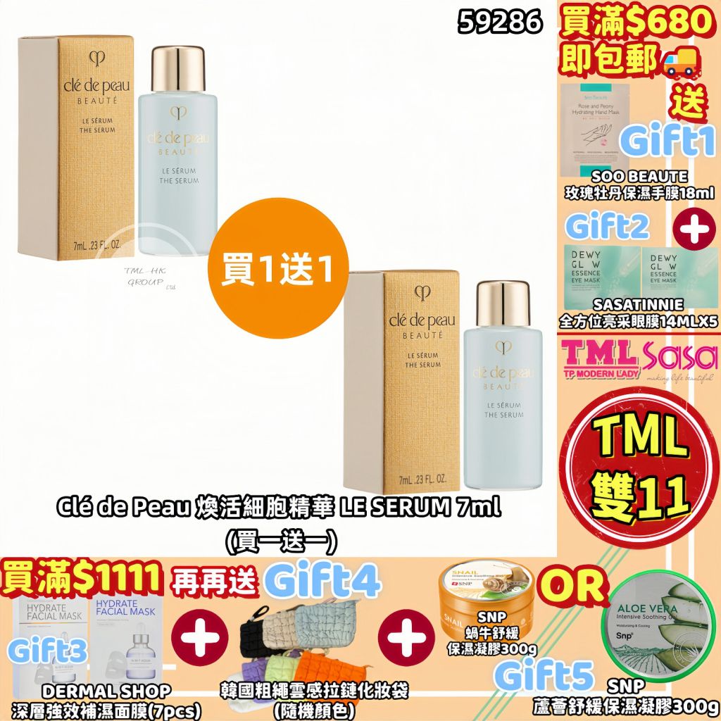 SASA X TML Clé de Peau 煥活細胞精華 LE SERUM 7ml 【全場買滿$680包郵 | 買一送一 | 16/11截單 | 預計聖誕前收貨 | 20251111(59286.)】