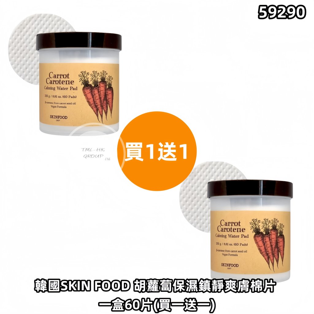 SASA X TML 韓國SKIN FOOD 胡蘿蔔保濕鎮靜爽膚棉片 一盒60片 CARROT CAROTENE CALMING PAD【全場買滿$680包郵 | 買一送一 | 16/11截單 | 預計聖誕前收貨 | 20251111(59290.)】