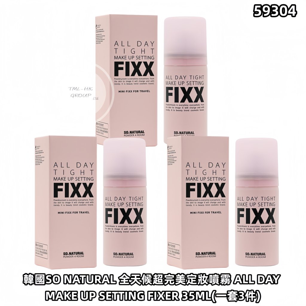 SASA X TML 韓國SO NATURAL 全天候超完美定妝噴霧 ALL DAY MAKE UP SETTING FIXER 35ML【全場買滿$680包郵 | 一套3件 | 16/11截單 | 預計聖誕前收貨 | 20251111(59304.)】